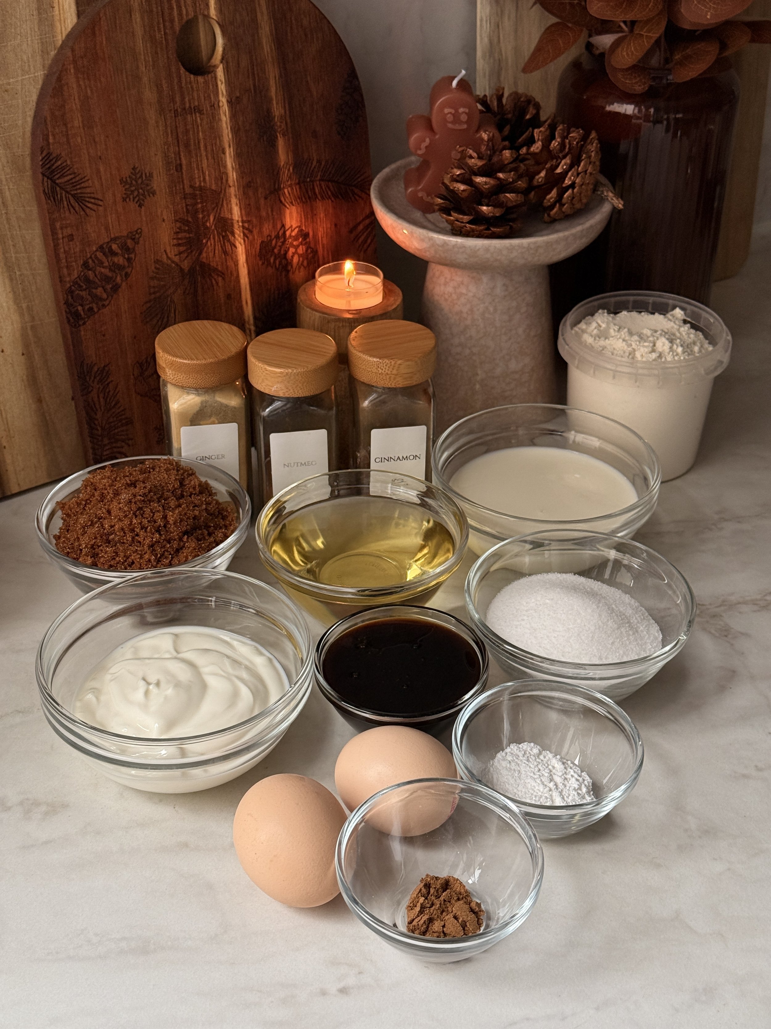 Spices: Ground cinnamon, ground ginger, nutmeg, gingerbread spice mix