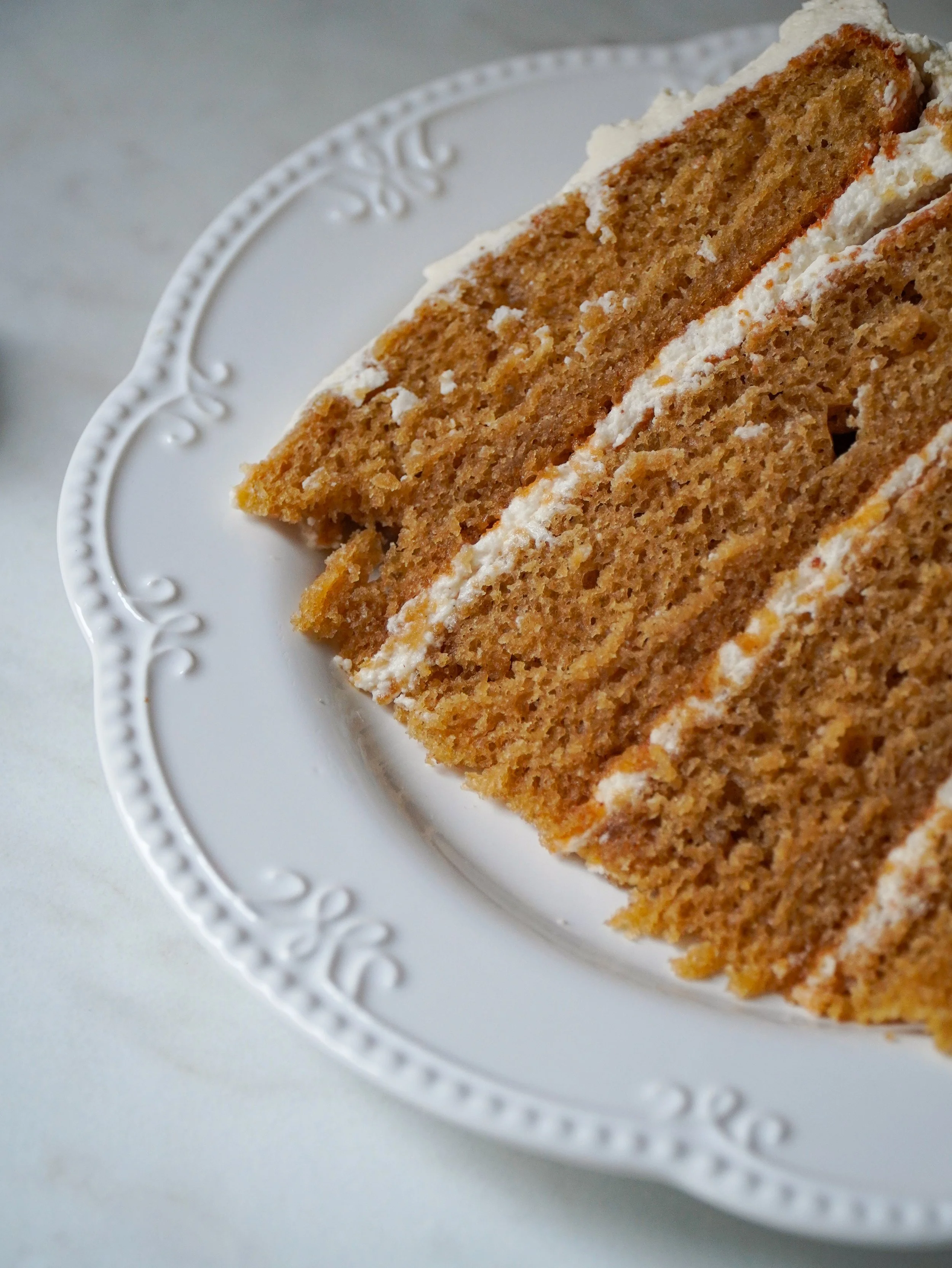I tested this Gingerbread Latte Cake several times before sharing it. I kept adjusting the recipe until I was happy with the texture and ended up with cake layers that are soft and moist, without being dense.