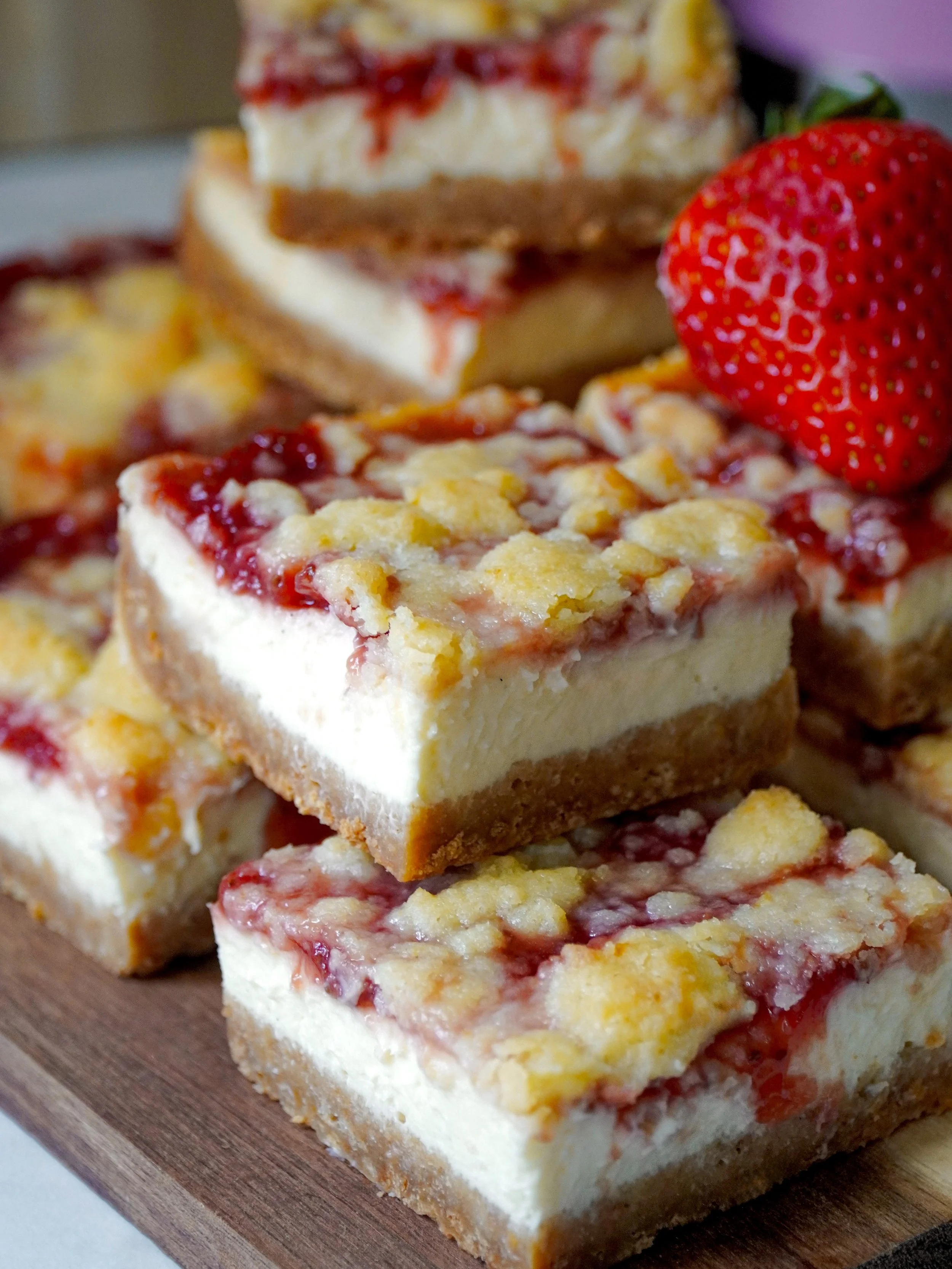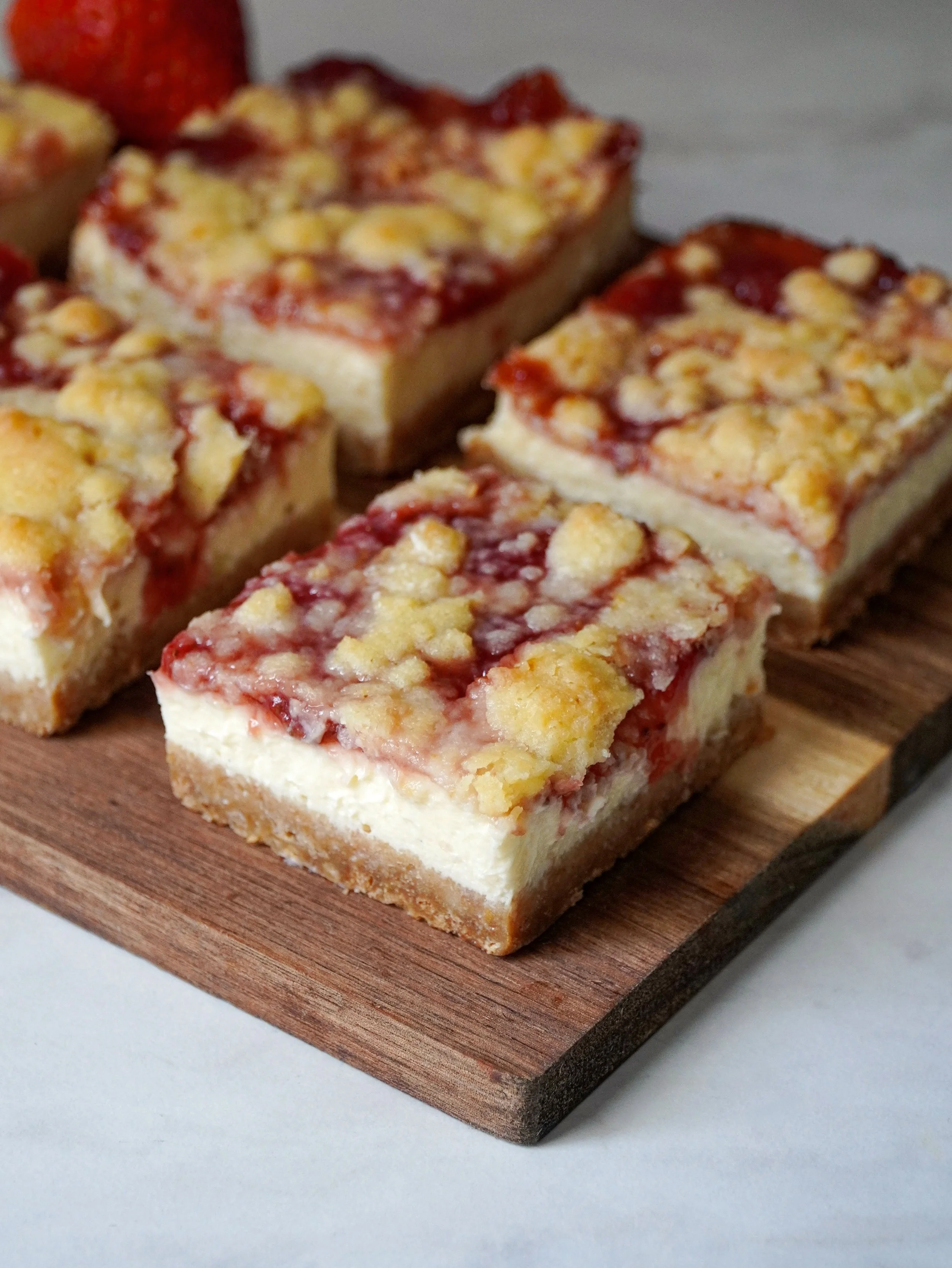 🍓❤️ Buttery streusel topping - The streusel adds a light crunch and extra flavor. It pairs so well with the soft cheesecake and the jammy strawberry layer.