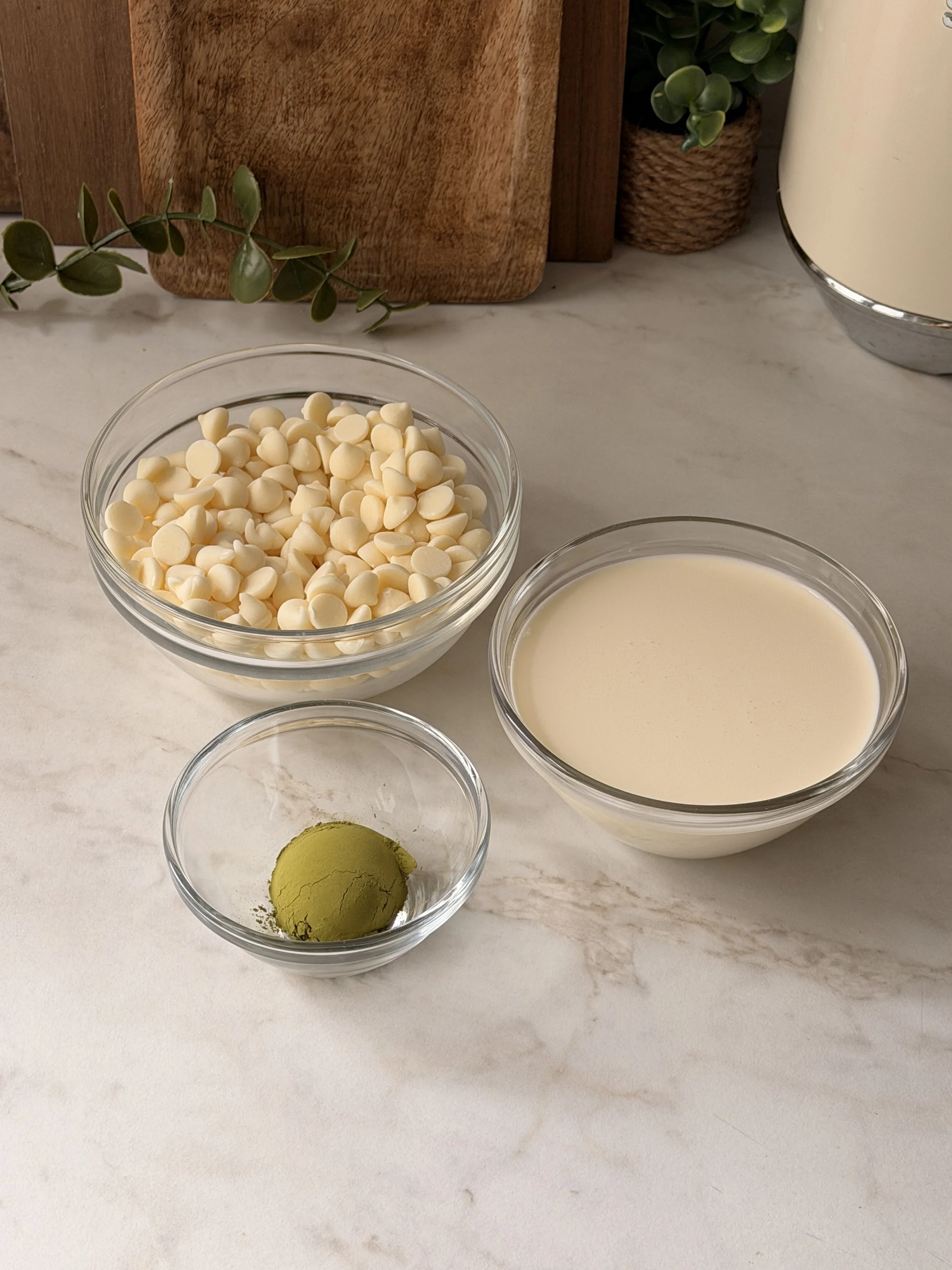 Matcha powder: Adds that earthy, slightly bitter green tea flavor that balances the sweetness of the white chocolate.