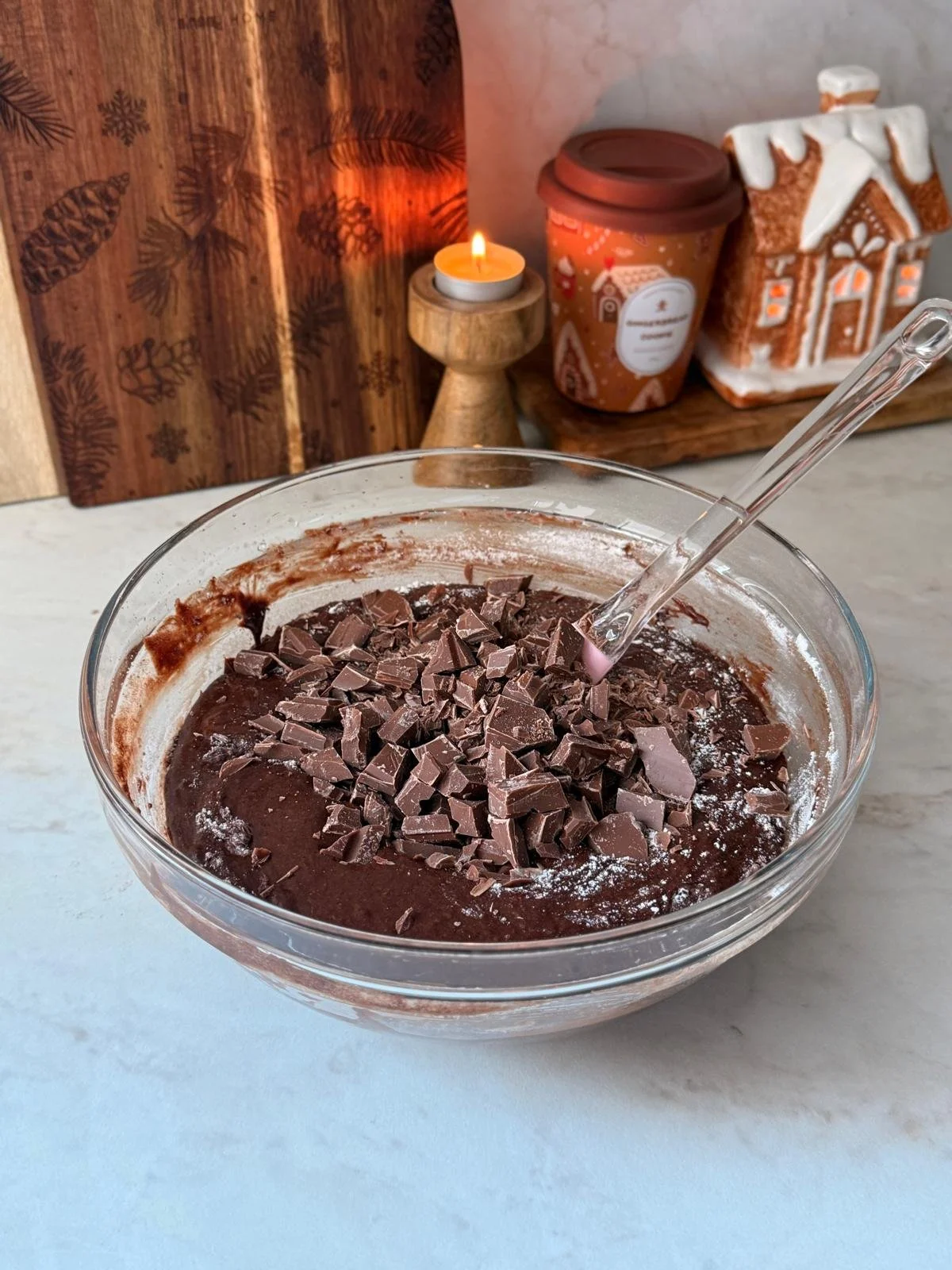 10. Fold in the milk chocolate chips or chunks.