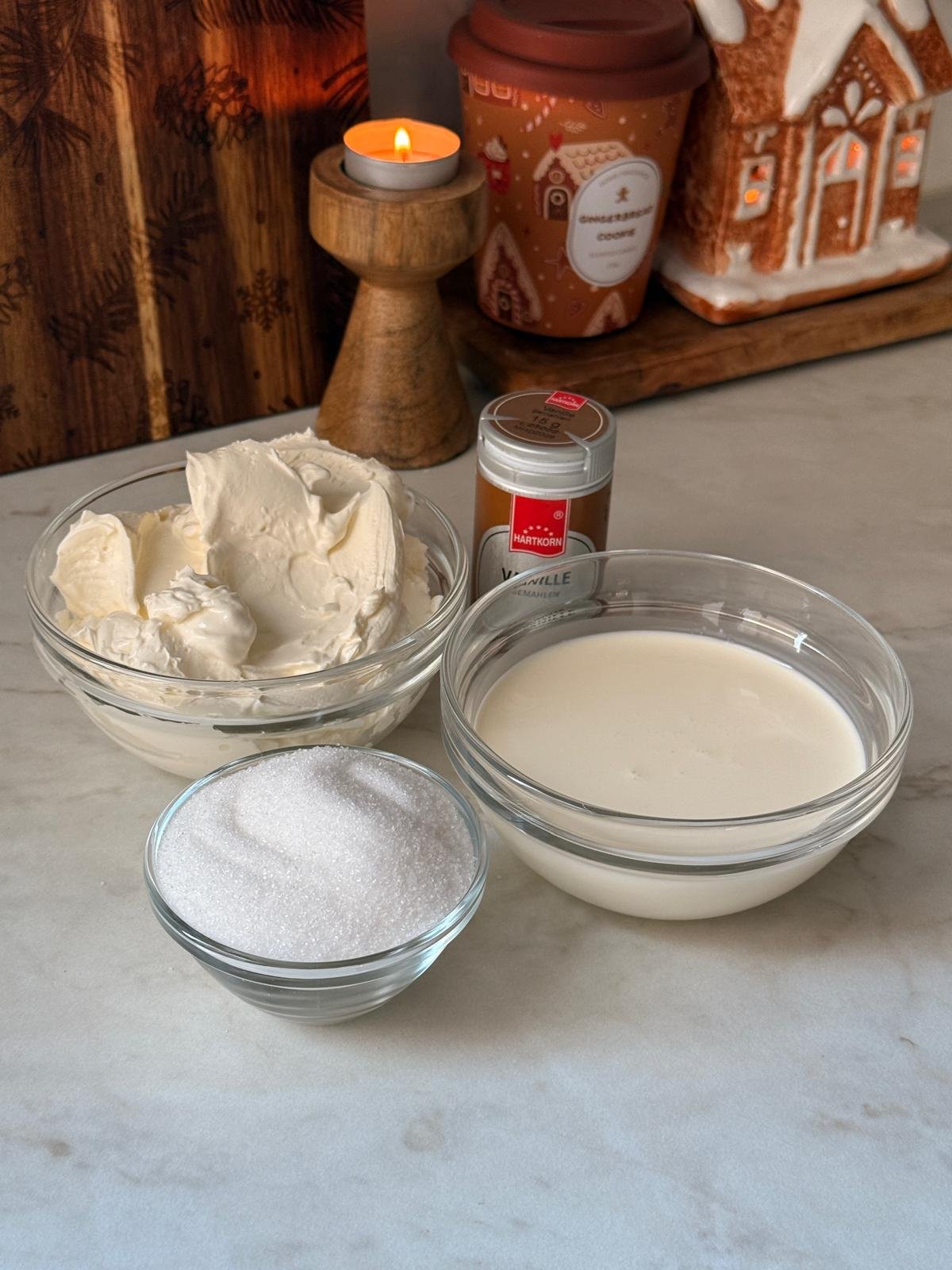 - Add the whipping cream and vanilla, then whisk until the mixture turns fluffy and can hold its shape.