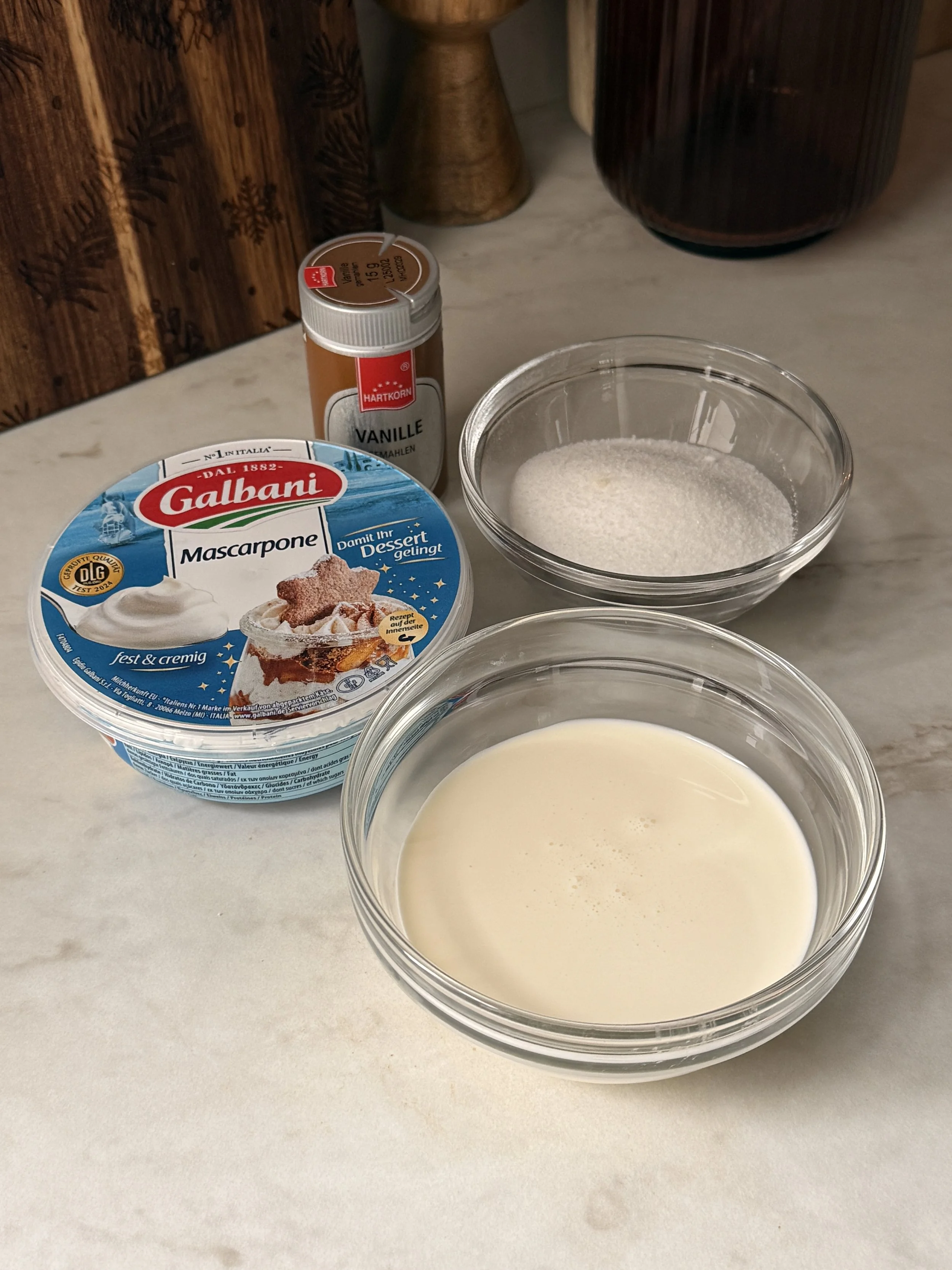 - 250g Mascarpone - 1 cup + 2 tablespoons