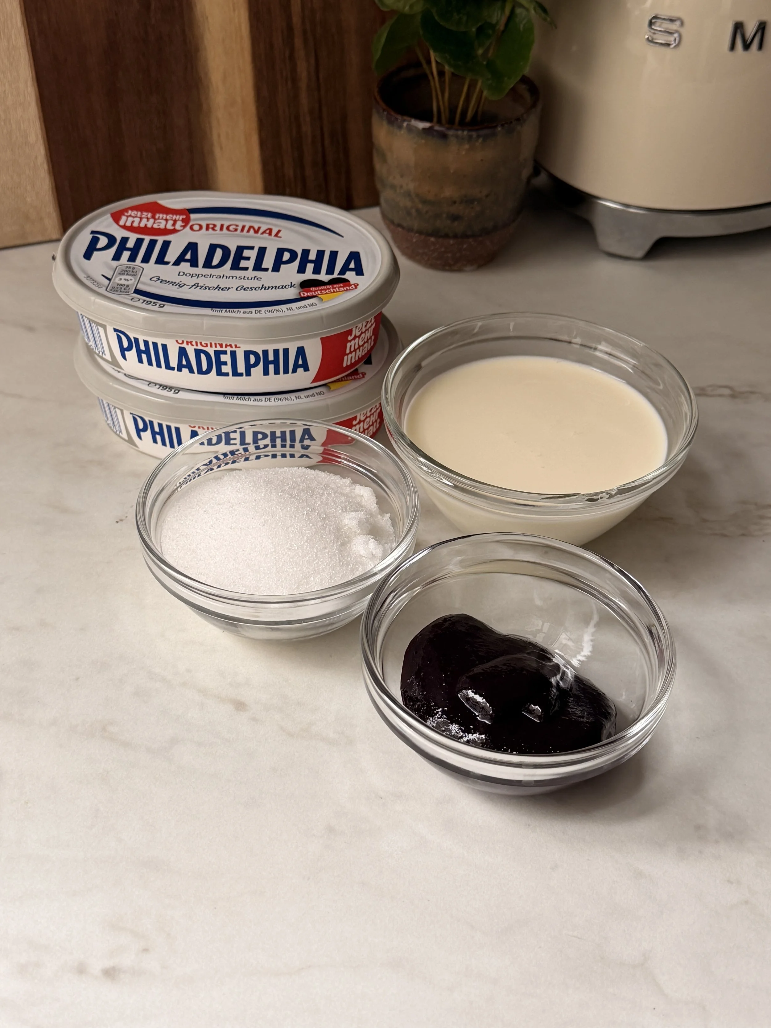 - 400g cream cheese (1 cup + 3/4 cup)