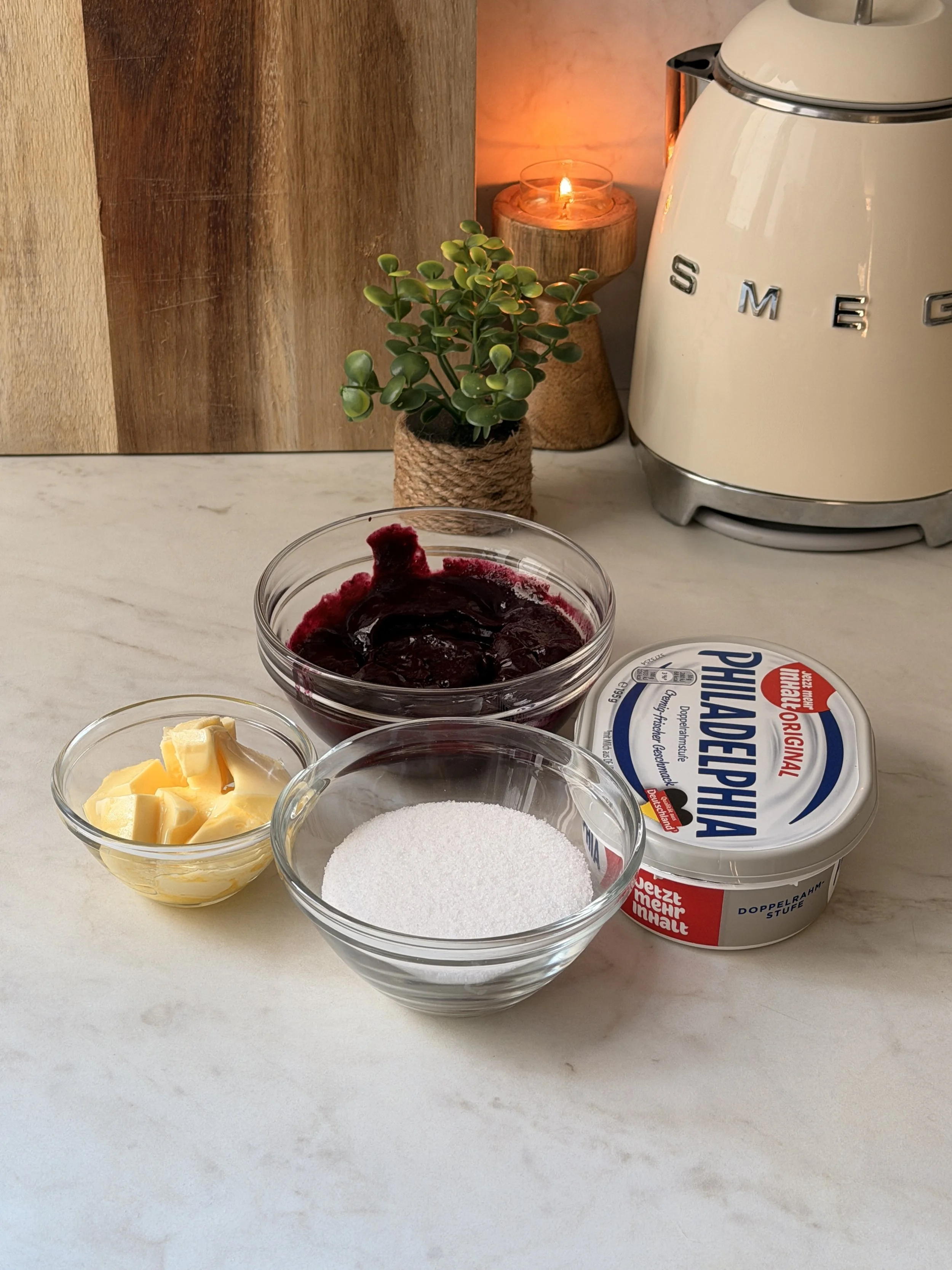 → Reserve 150g of blueberry jam for the frosting - You’ll use this later to make the cream cheese frosting extra flavorful and naturally purple.