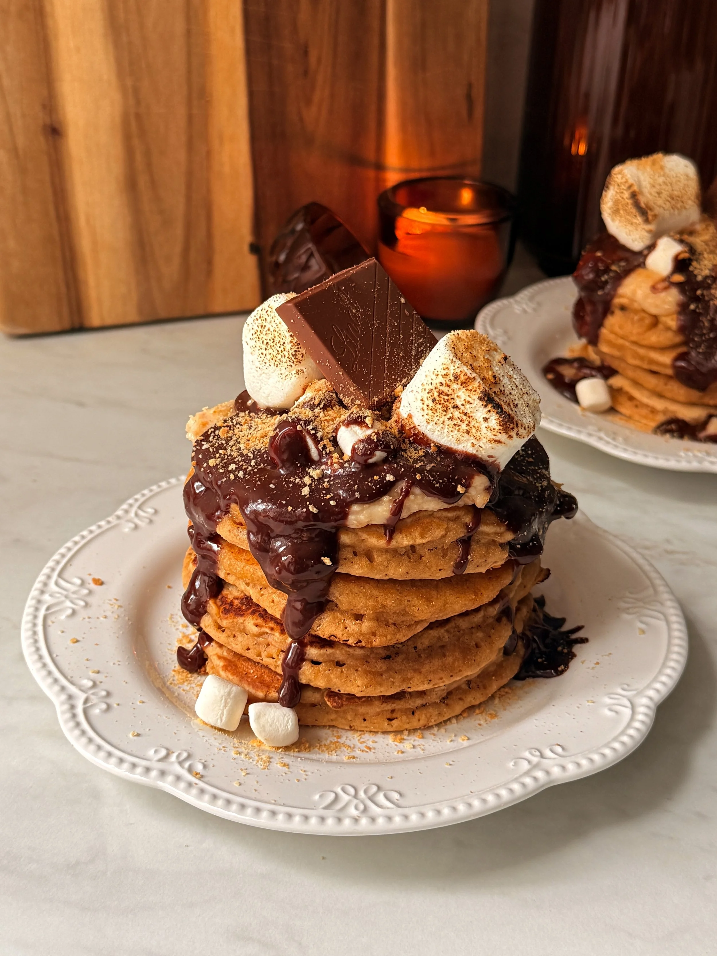 These S’mores Pancakes weren’t even on my to do list lol. It all started with a random thought on a Saturday afternoon while I was planning Sunday breakfast. I originally wanted simple Chocolate Chip Pancakes, but that felt too basic and I needed something more special. That’s how this recipe came to life.