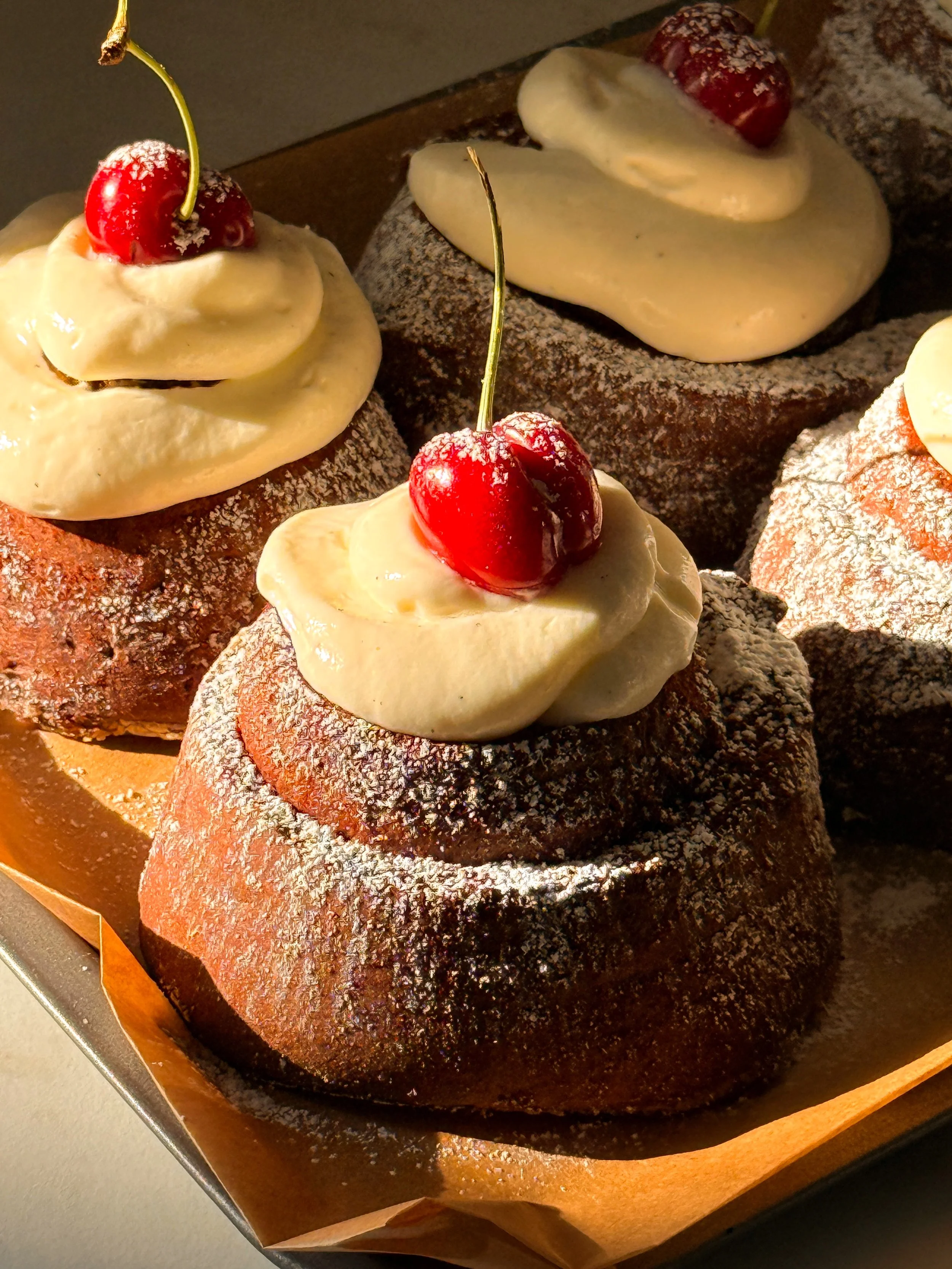 Black Forest Cake inspired Cocoa-Cherry Cinnamon Rolls